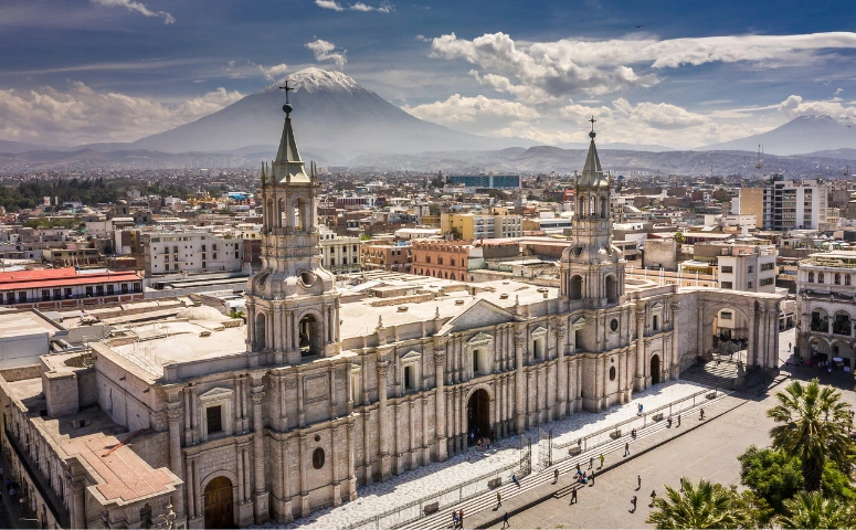 Il viaggio ha inizio con l’arrivo a Lima, dove, dopo le procedure di sbarco, si prende un volo interno per Arequipa. L’hotel, situato nel cuore del centro storico, consente di esplorare facilmente la città bianca: la Plaza de Armas, la Cattedrale, il Convento di Santa Catalina, il chiostro della Compañía, il mercato di San Camilo e il Museo Santuario Andino. Giornata libera e pernottamento ad Arequipa all’hotel Santa Rosa***.