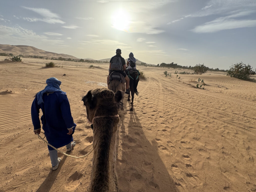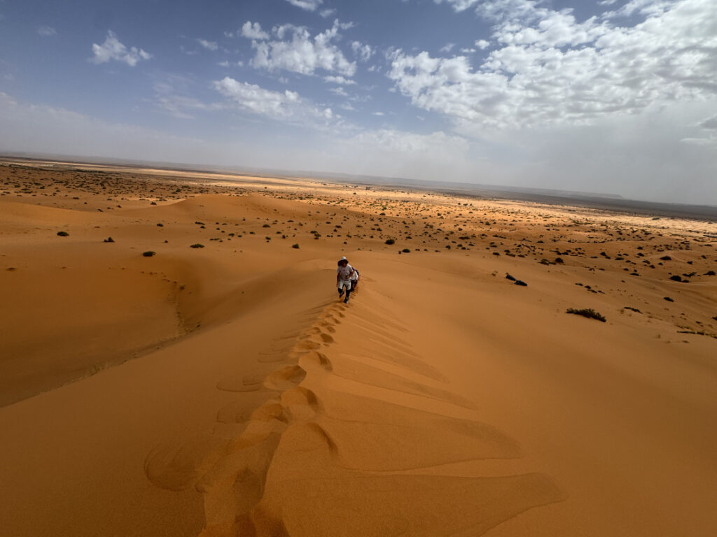 All’alba ci mettiamo in cammino verso Erg Chegaga, il deserto più grande e maestoso del Marocco. Le dune si fanno immense, e ogni passo diventa un gesto di ascolto.
